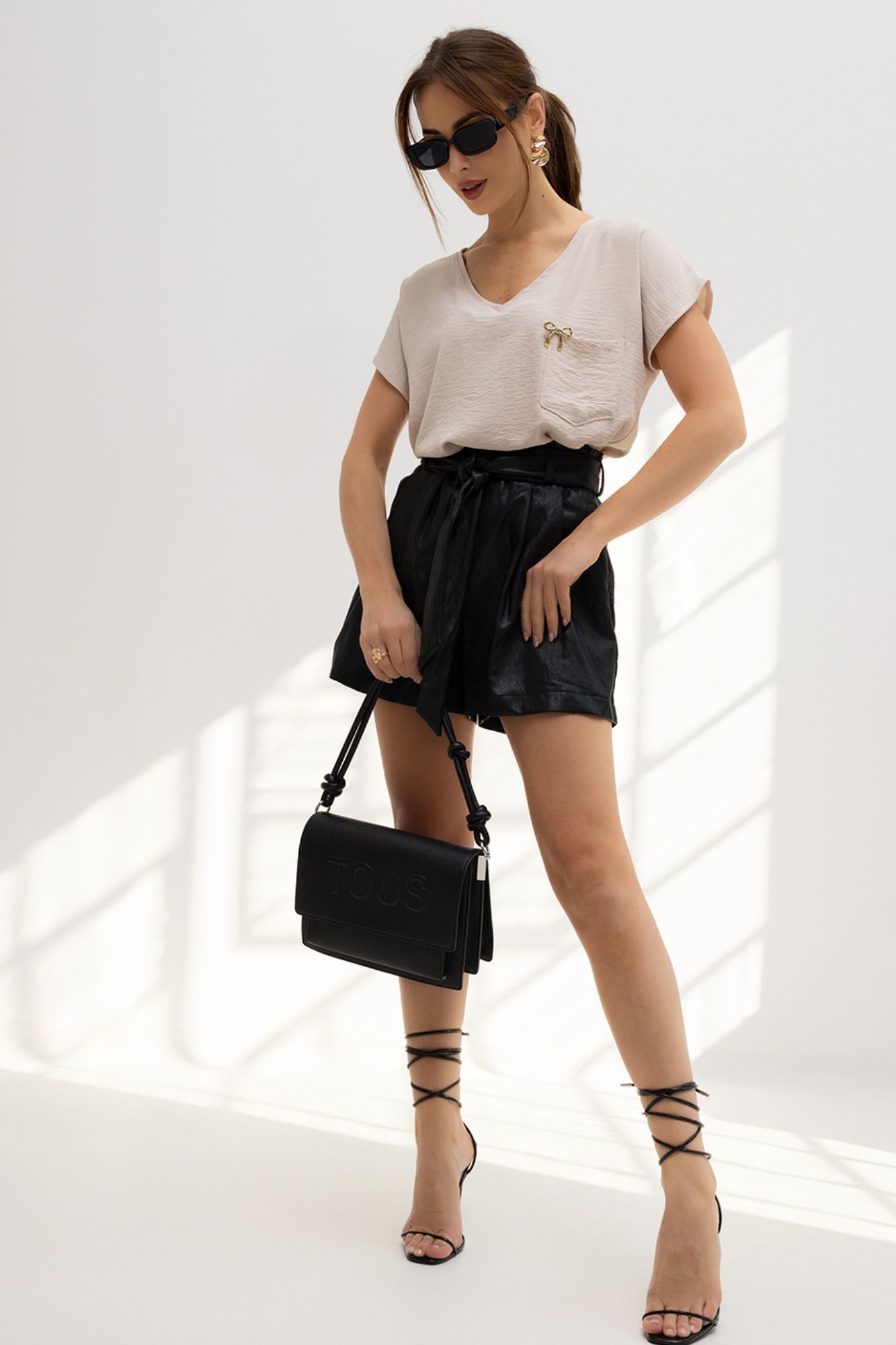 Beżowa damska Minimal basic z broszka krótki rękaw