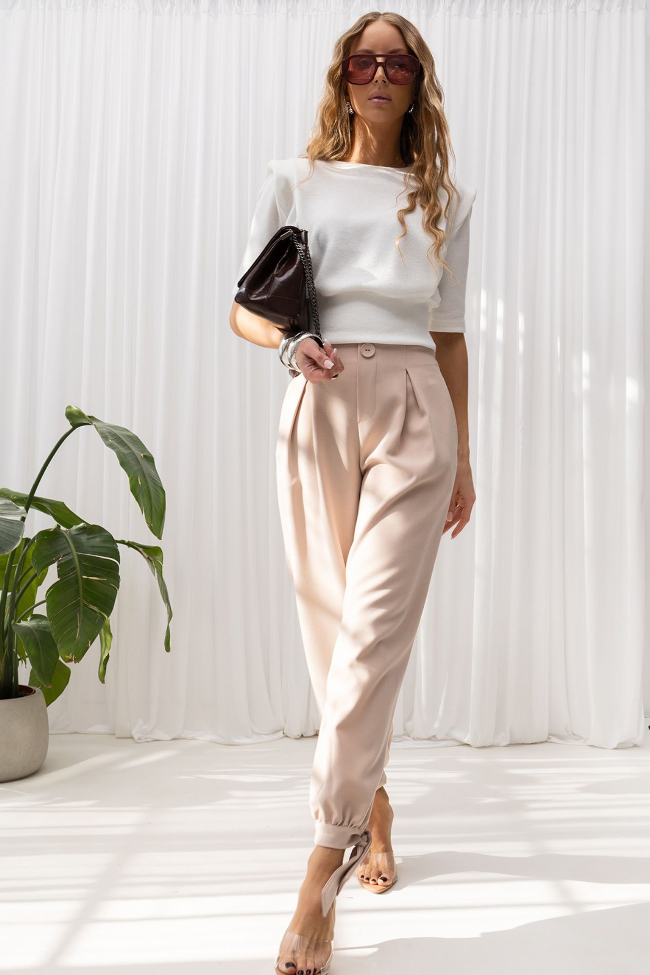 Spodnie Gaya w beżowej odsłonie to uniwersalna baza, która łączy komfort z elegancją – idealne dla kobiet, które cenią styl bez kompromisów.