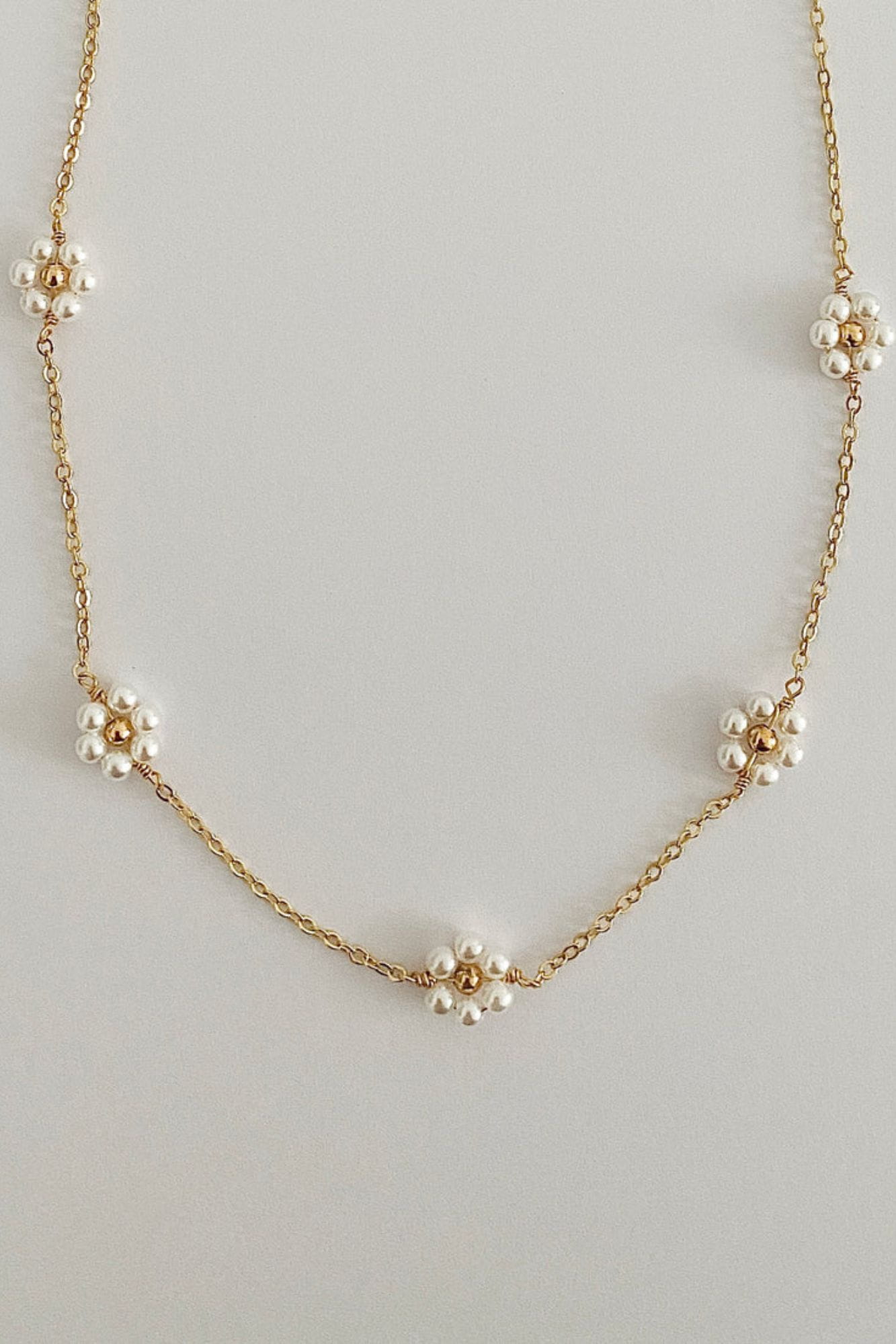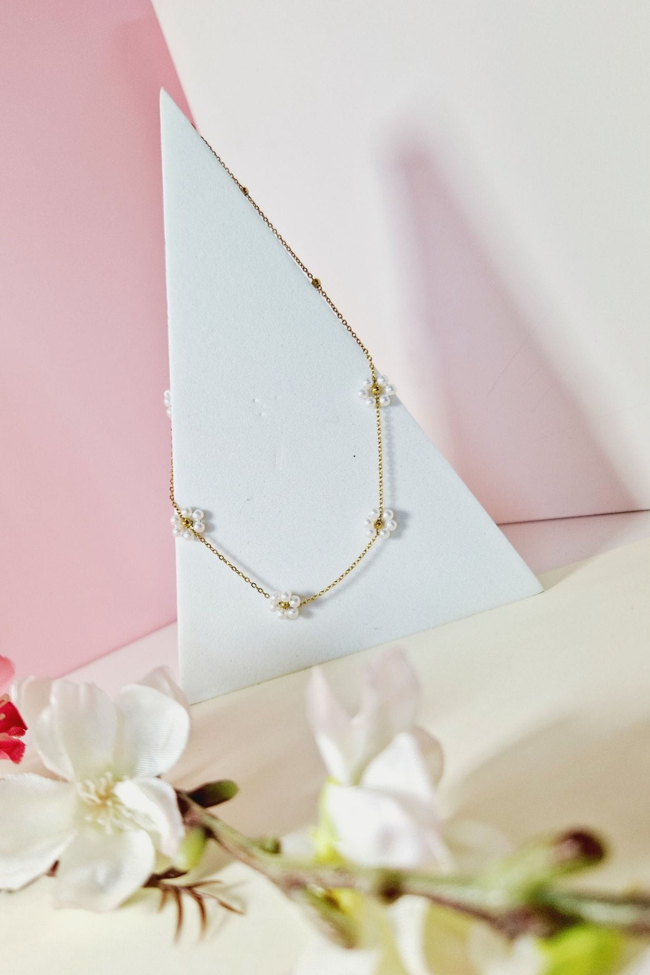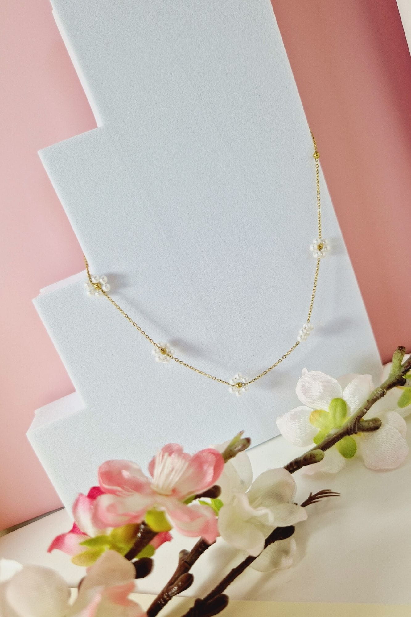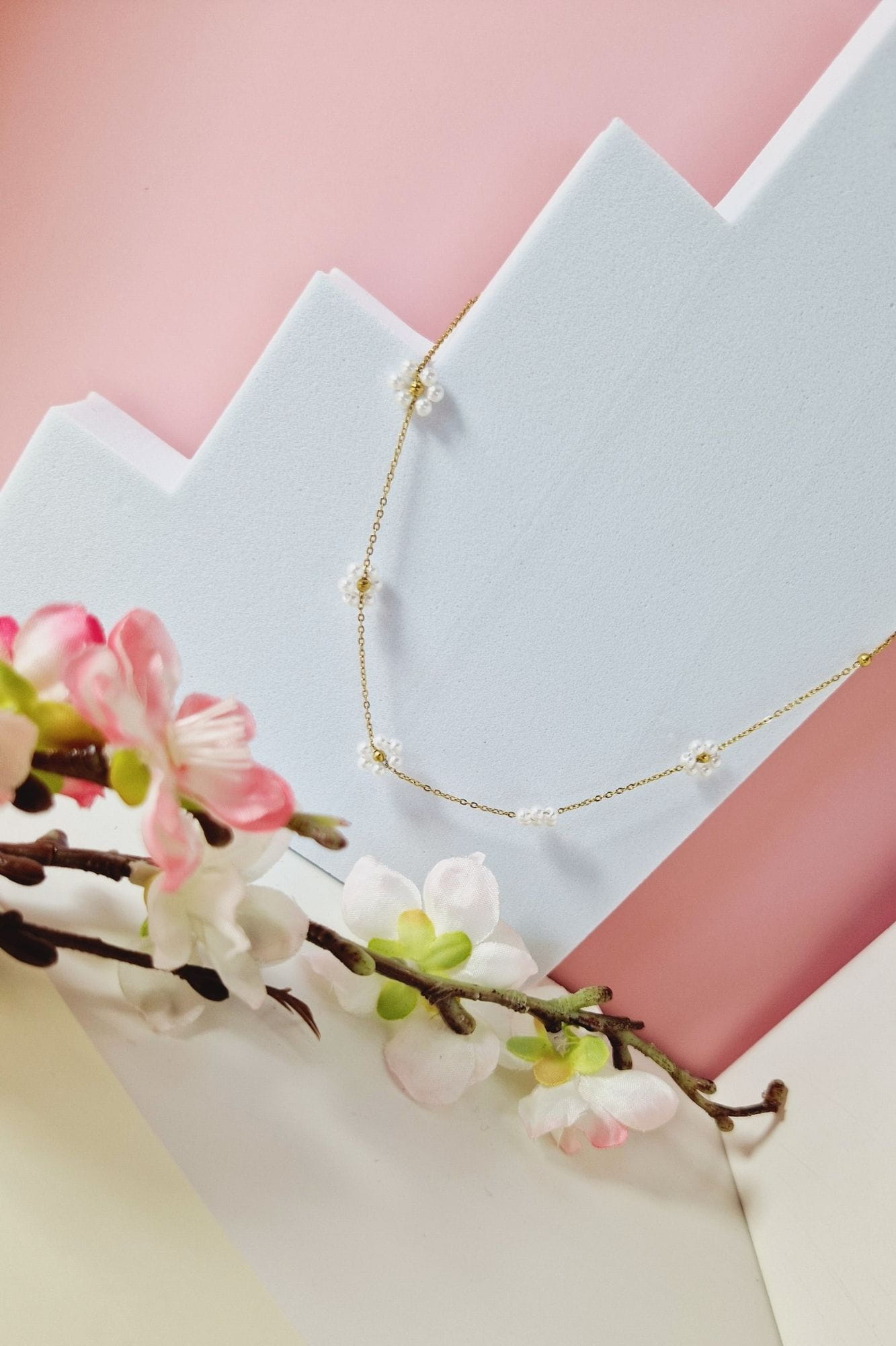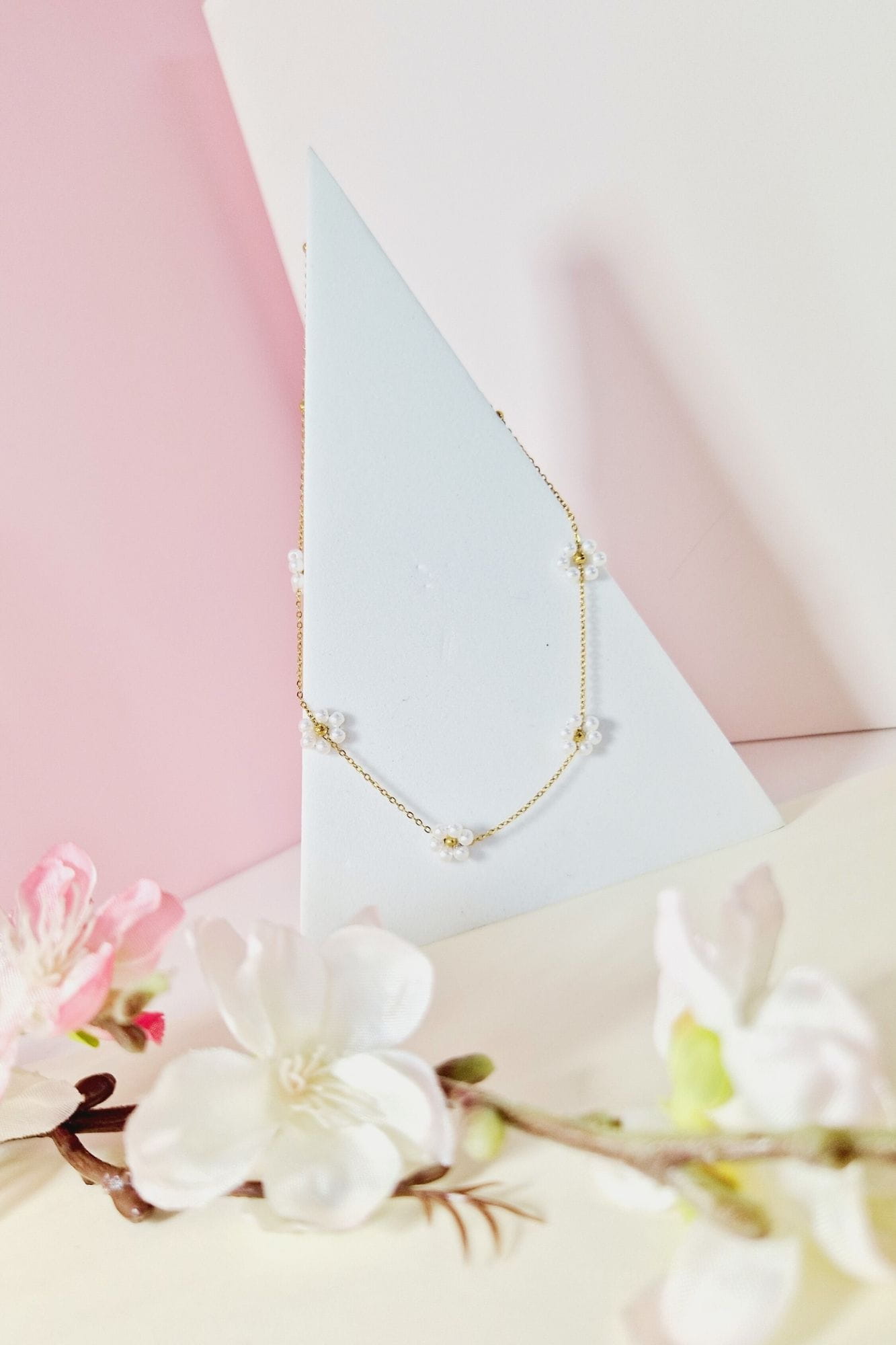Naszyjnik z kwiatuszkami stal chirurgiczna perełki